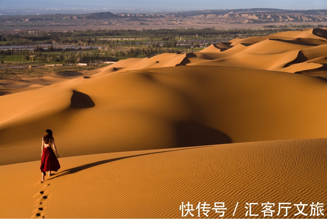 库木塔格沙漠是世界上唯一与城市相连的沙漠,也是世界上距离城市最近的沙漠,沙漠与绿洲仅一河之隔,却千年来友好相处,亲如近邻,创造了“沙不进,绿不退,人不迁”的世界奇迹,将人与自然和谐共生的神奇演绎的淋漓尽致。