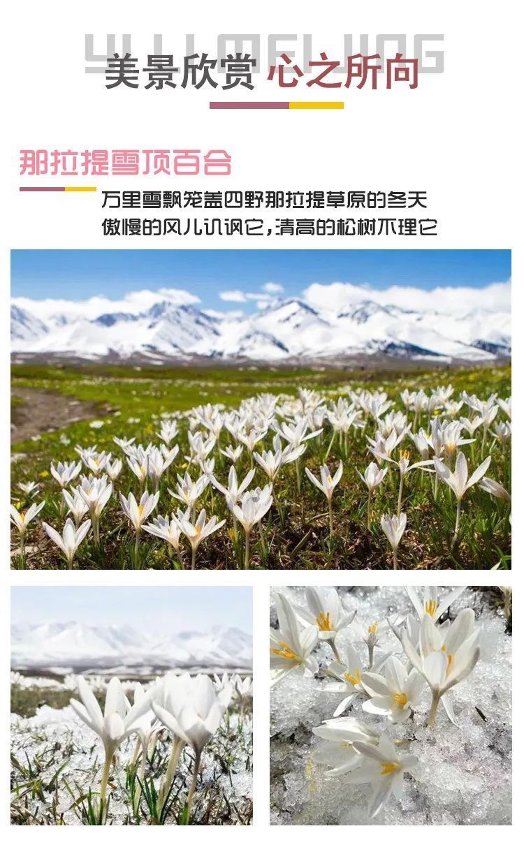 4-9月是草原最好的赏花季,从4月初顶冰绽放的野百合到6月下旬的阿山金莲、鼠尾草,各类山花争奇斗艳。此时,当地人还会举办各种集会,如赛马、摔跤等。