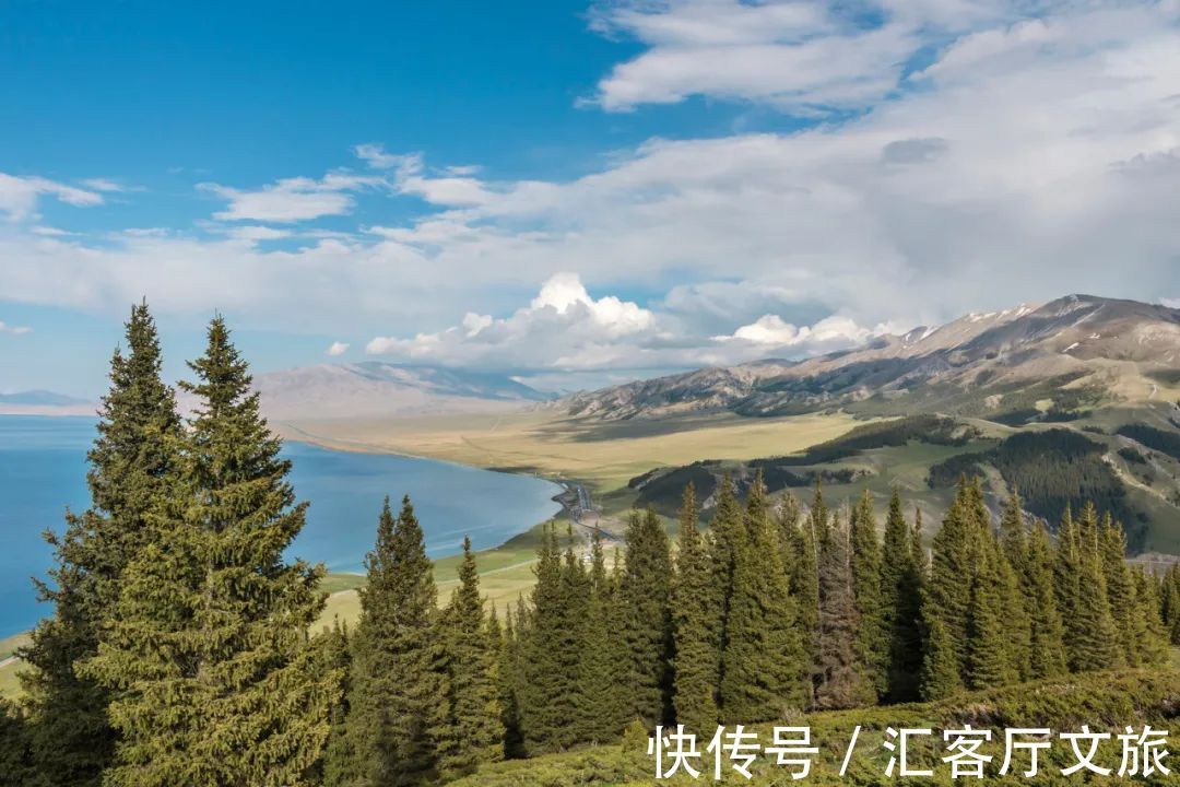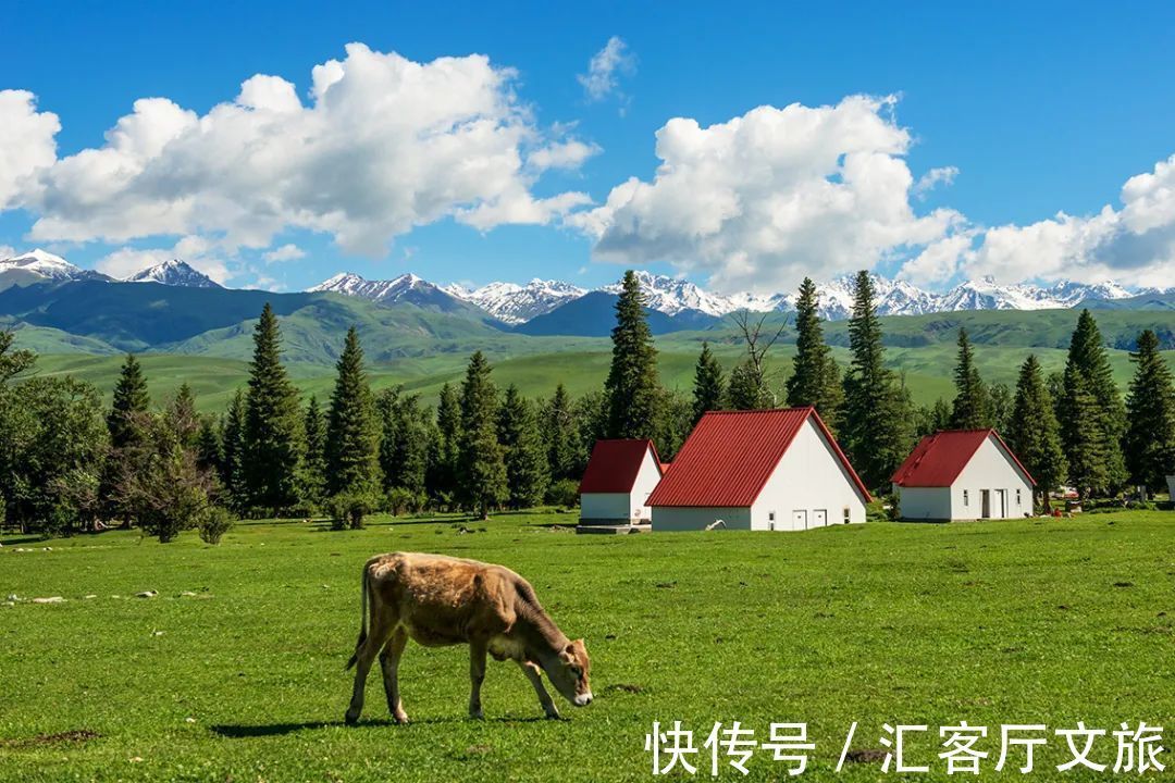 这里不仅有湖泊,还有湖畔碧绿的草原,牛马羊群慢悠悠地路过,哈萨克族的白毡房颇有一番异域风情,远处天山独有的雪岭云杉让人觉得人在油画中。